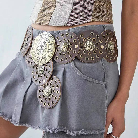 Retro Exaggerated Hip Hop Punk Metal Round Belts