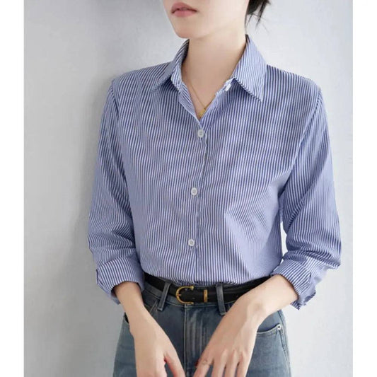 Regular price $17.97 USDRegular priceUnit price per$5.94 USDSale price $17.97 USDWomen Blue Striped Loose Long Sleeves Shirt