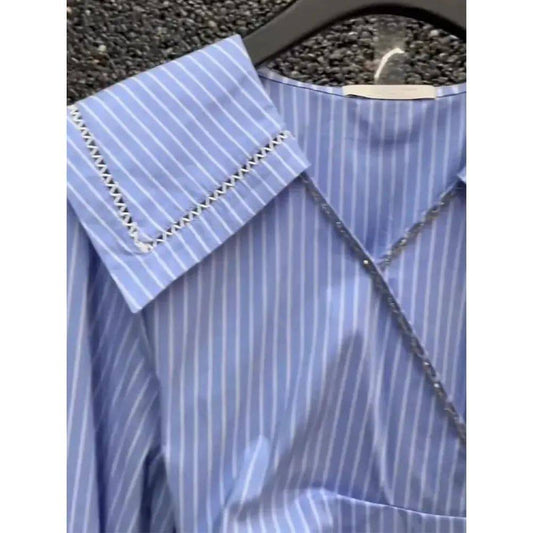 Vendor:XmakerRegular price $54.00 USDRegular priceUnit price per$82.26 USDSale price $54.00 USDWomen Blue Striped Long Sleeved Blouse