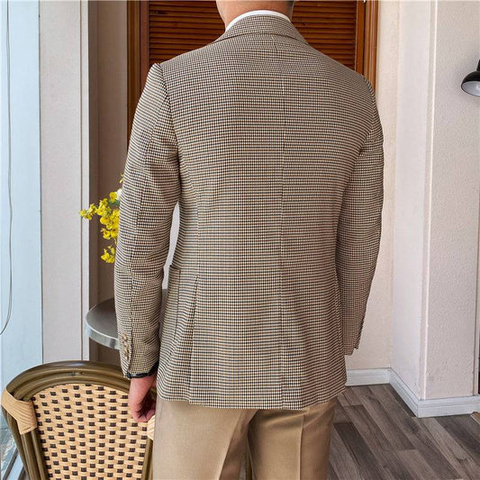 Men's Tweed Plaid Double Breasted Tuxedos Suit Set