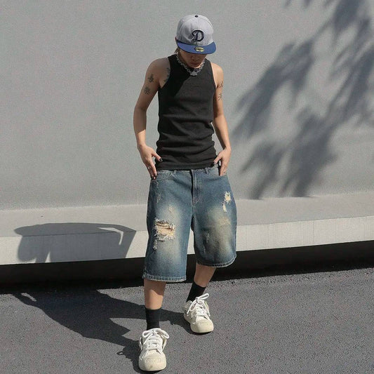 Men's Summer Ripped Denim Shorts
