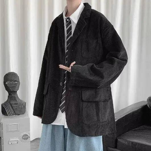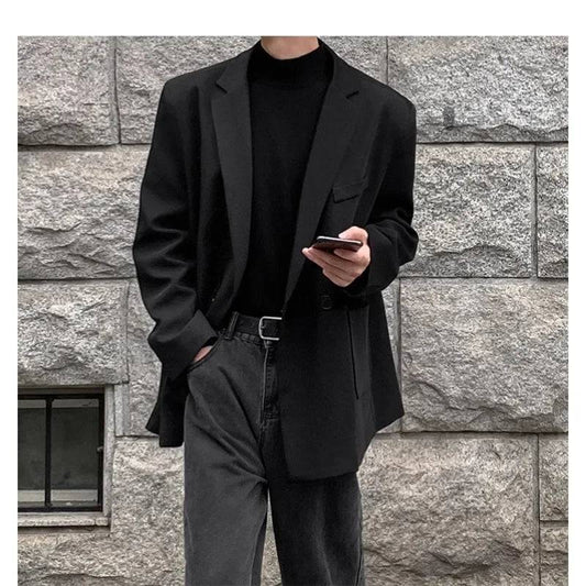 Mens Blazer Loose Fit Shoulder Padded Casual Suit Jackets