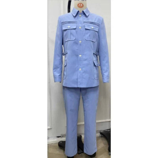 Men's Blazer Blue Single Breasted Lapel Collar Suit Set