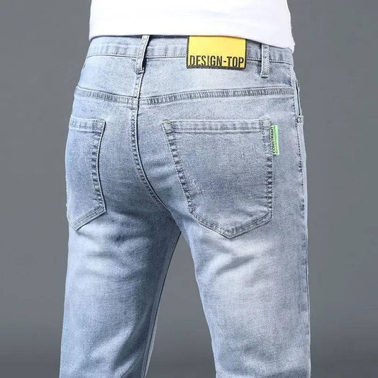 Mens Slim Fit Ripped Straight Cotton Denim Jeans