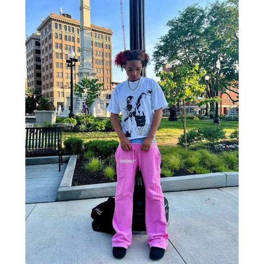Men Embroidered Baggy Aesthetic Wide Leg Sweatpants