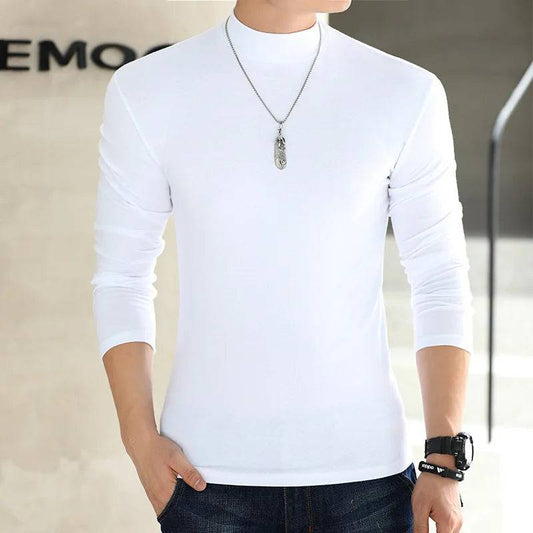 Men Mock Neck Basic T-shirt Pullover Long Sleeve