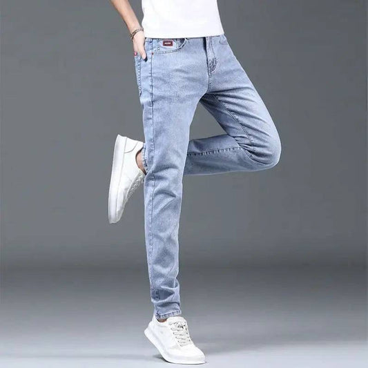 Men Washed Tight Solid Slim Cowboy Stretch Denim Jeans