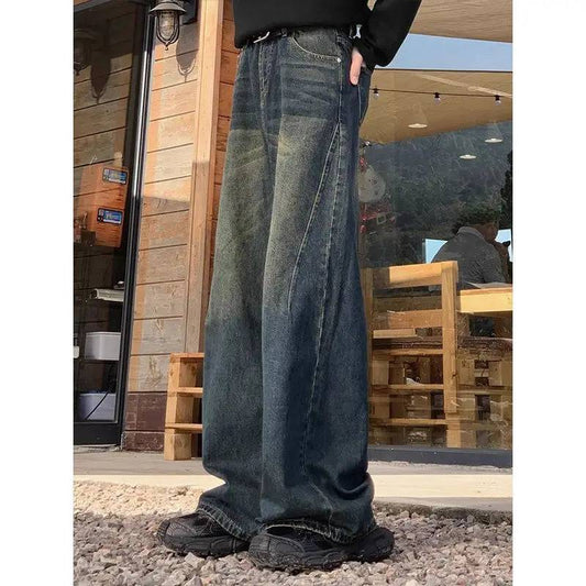 Men's Washed Retro Baggy Goth Hip-hop Straight Y2K Wide Leg Black Jeans