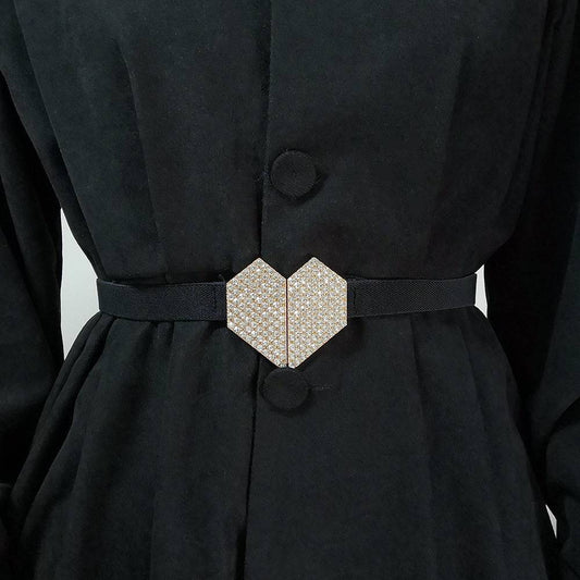 Women's Heart Shape Rhinestone Elastic Belt