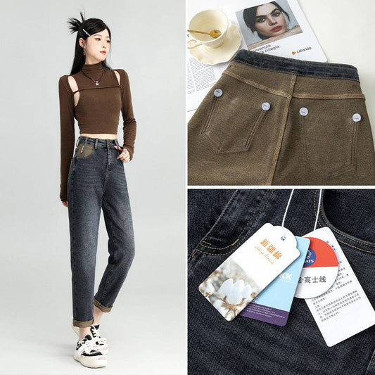 Women's Elastic High Waist Harem Loose Slimming Jeans