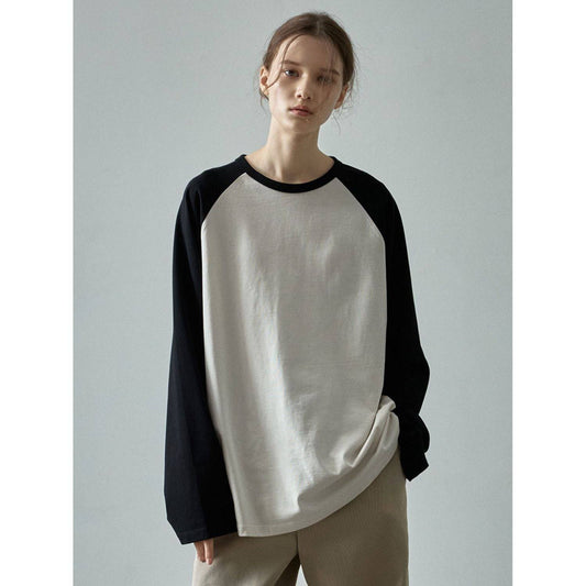 Casual Loose Fit Round Neck Raglan Long Sleeve T-Shirt